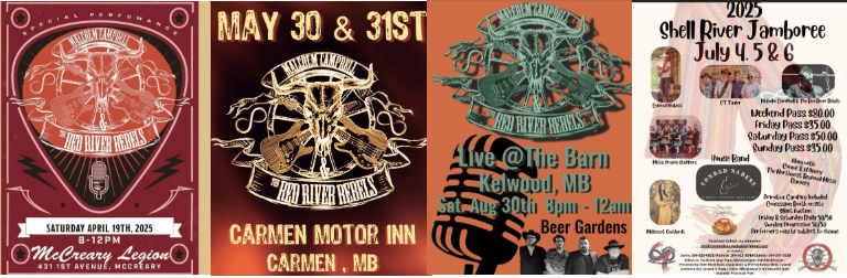 Classic rock, golden age country and blues is the forte of this group of Metis musicians from Kinosota, a small farming community on the west shore of Lake Manitoba. Formed as an alternative to traditional fiddle music popularized by their ancestral families and musical peers, The Red River Rebels boast 100 plus years of musical mileage that has travelled through Manitoba, Canada and the United States.